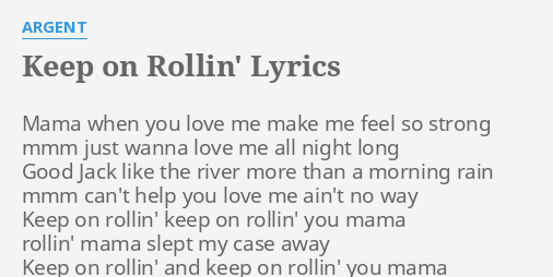 I just keep on rollin. Well thats what Im. There are 60 lyrics related to Keep On Rollin.